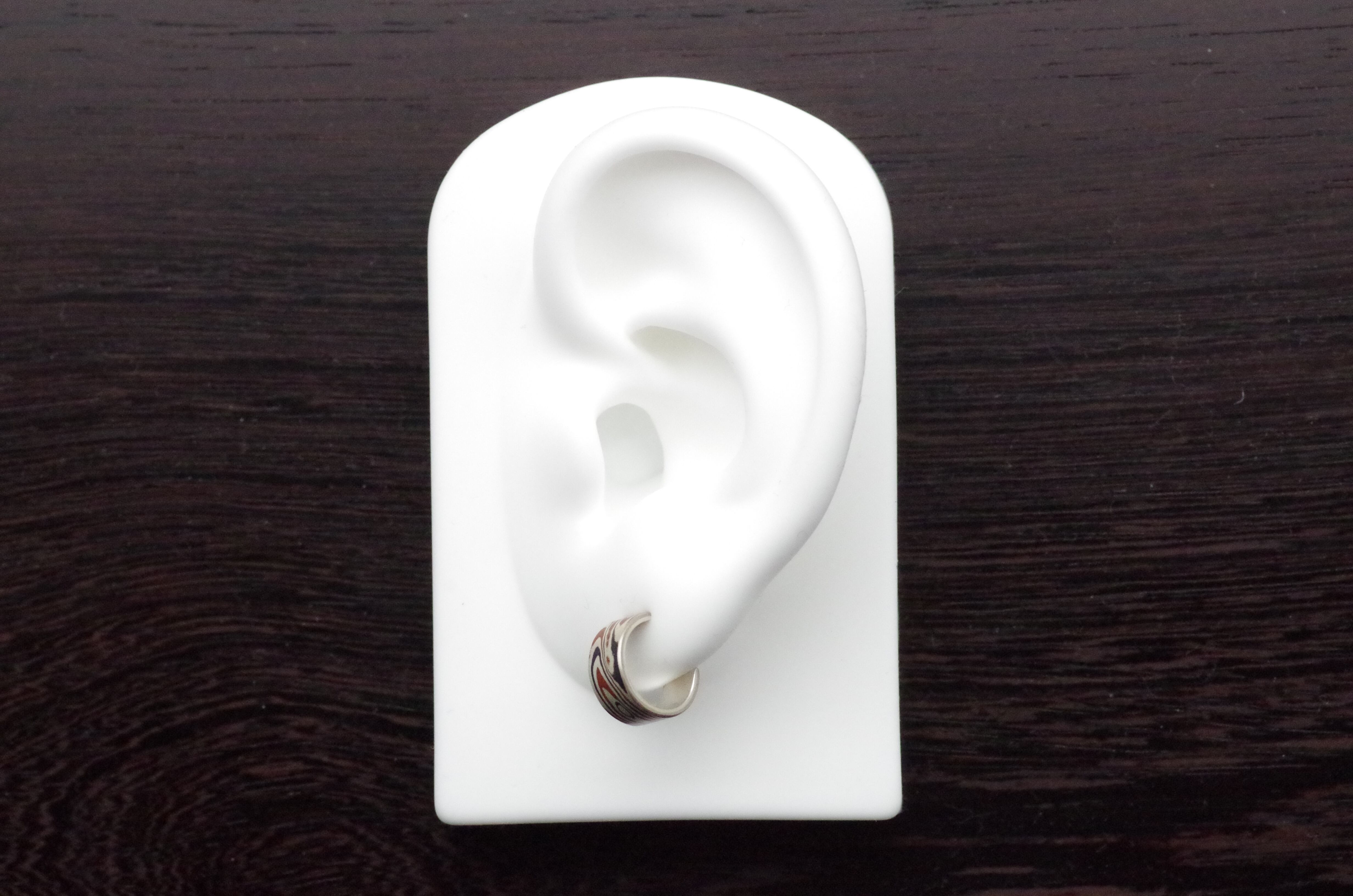 木目金ピアス 銀✕銅✕赤銅 Mokumegane earring silver,copper,shakudo