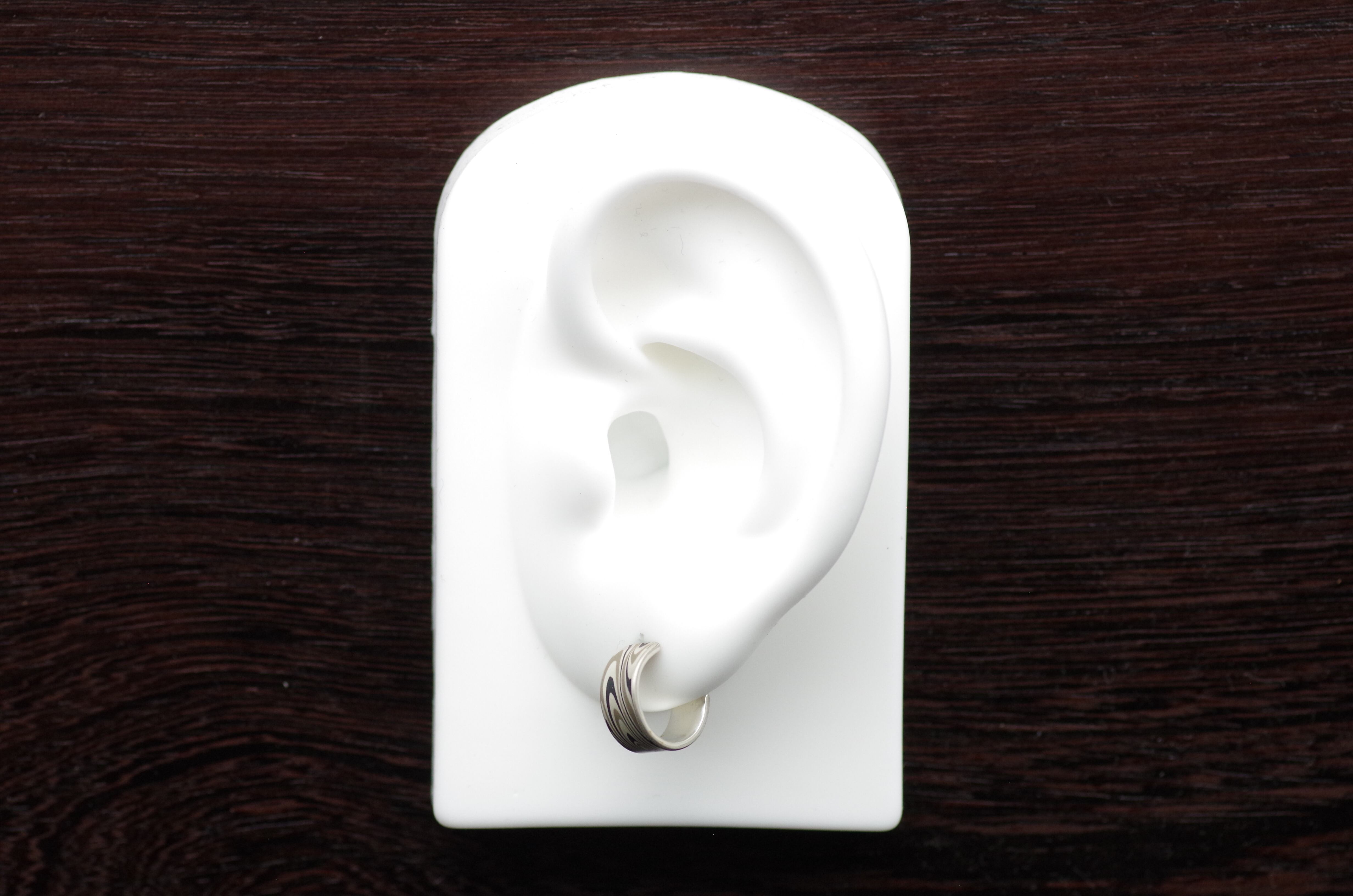 木目金の美しさをうまく表現した、高級感あるピアスです。銀、赤銅、四分一を組み合わせ、エレガントかつナチュラルな表情を実現しました。職人が一つ一つ丹精込めて作っていますので、品質も抜群。もちろん、軽量でつけ心地も抜群です。