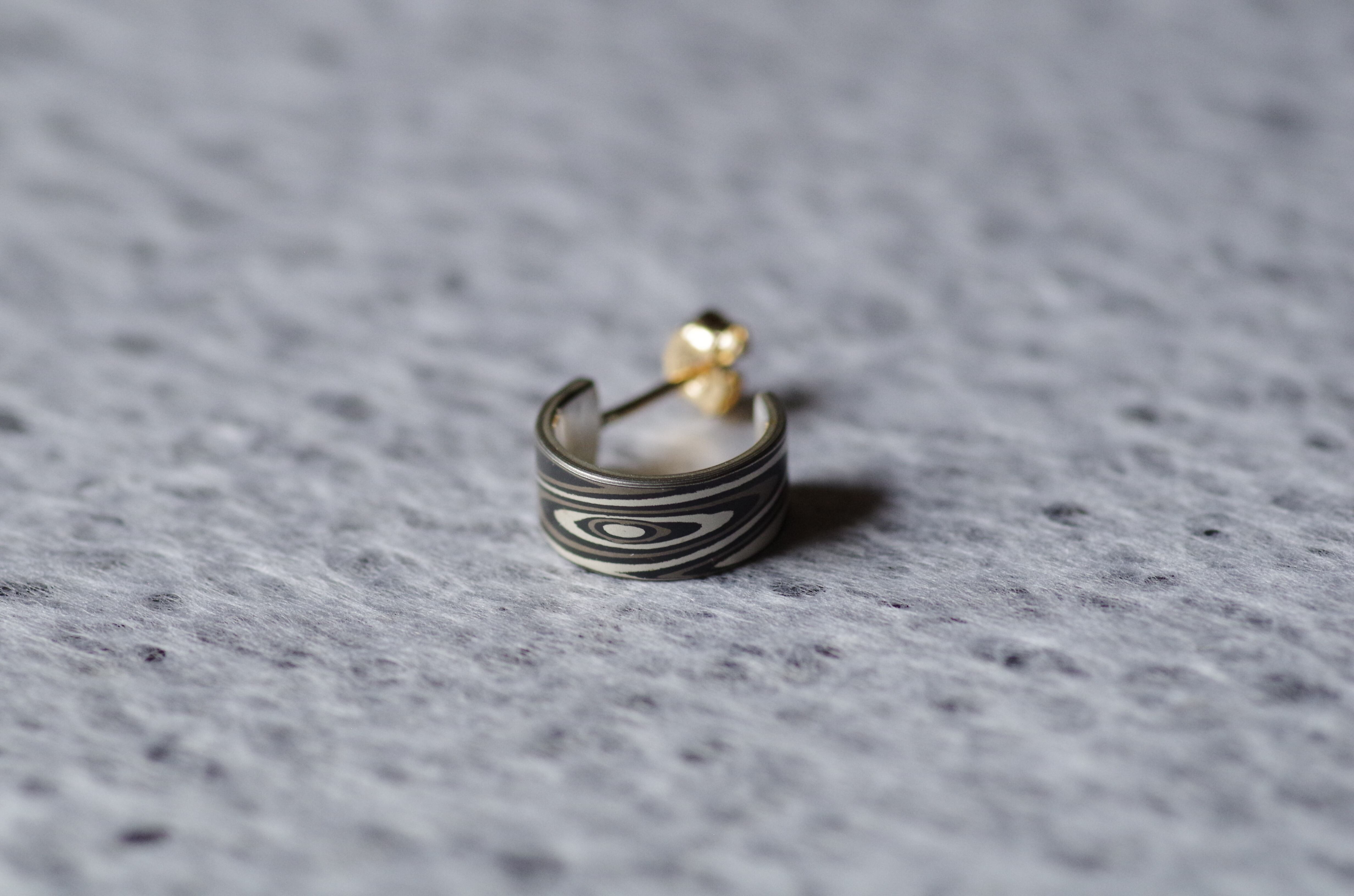 木目金ピアス 赤銅✕銀✕四分一 Mokumegane earring shakudo,silver,shibuichi